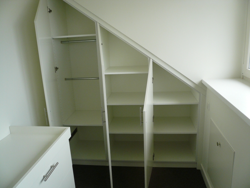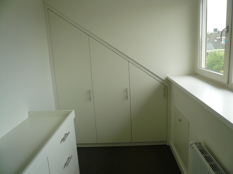 Een slaapkamerkast als ruimtewinner en niet als sta in de weg. Op maat van muur tot muur, aansluitend tegen een schuine wand, met de gewenst diepte en met draai- of schuifdeuren. Of een kamer aangekleed als inloopkast, een aparte ruimte die optimale bergruimte biedt.