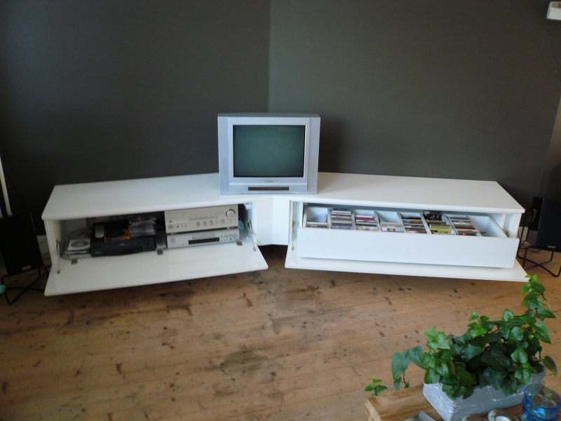 AV staat voor audio visueel, de combinatie van geluid en video zijn geïntegreerd in deze ontwerpen. Het idee is vaak om een zo een compact mogelijk meubel te maken waarin alle aspecten op dit gebied aanwezig zijn tevens is het belangrijk dat het aanzicht vanuit de woonkamer op het juiste niveau blijft. In deze ontwerpen wordt altijd rekening gehouden met de aansluiting en bekabeling en eventueel verlichting om zoveel mogelijk te verwerken.